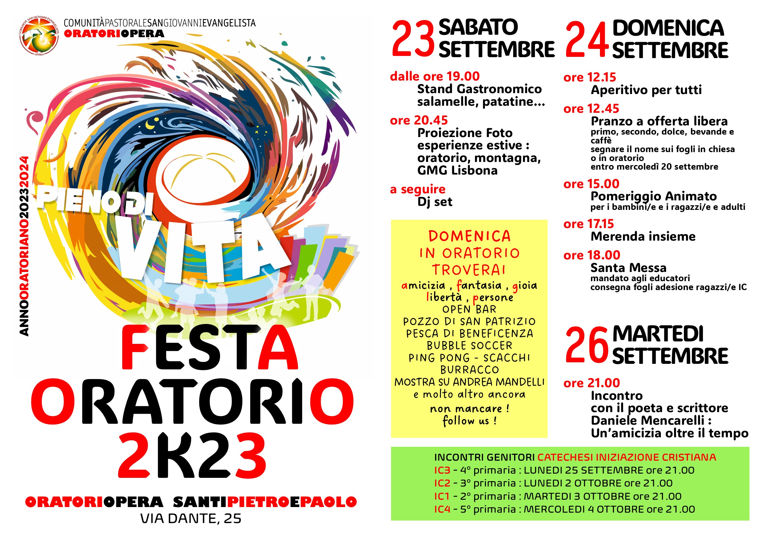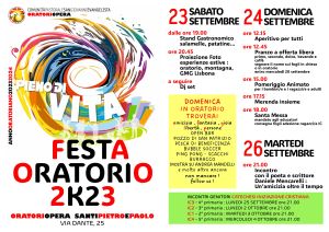 Festa dell’Oratorio 2k23 Pubblicato giorno 16 settembre 2023 - In home page Ecco il programma. Leggilo e condividilo